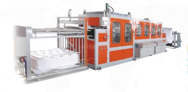 PSP快餐盒真空成型机是一种全能型热成型机组,它集真空成型、模压成型及综合成型为一身,可加工几乎所有的热成型塑料片材,机组采用全电脑数字控制系统,PLC机电一体化全自动控制,触摸屏控制各种动作程序,操作方便、节约材料、生茶效率高。具有可靠的稳定性、成型面积大、易操作、成型速度快、自动化程度高等特点。